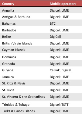 Our exercise focussed primarily on voice and SMS services from the two largest operators per country where applicable, and single operators, where there is still a monopoly in the mobile/cellular market. In the countries where Digicel and LIME (formerly Cable & Wireless) both operated, they were the largest providers, as per Table 2. The exceptions were the Bahamas, Belize, Guyana and Trinidad and Tobago.