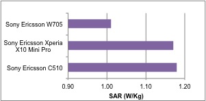 Figure 6: SAR levels for select Sony Ericsson handsets sold in the Caribbean, 2013 (Source: Sony Ericsson)