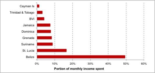 Figure 3: Portion of monthly income as a percentage consumed by an 8 Mbps Internet plan in select Caribbean countries as at May 2014 (Source: ICT Pulse)