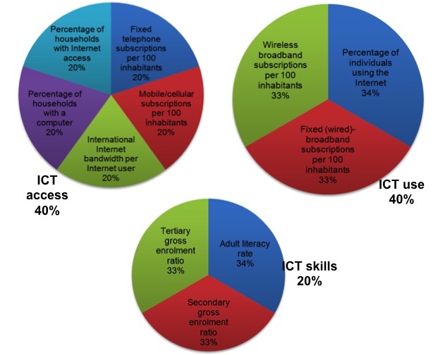 Figure 1: IDI indicators and weightings for 2013 exercise (Source: ITU)