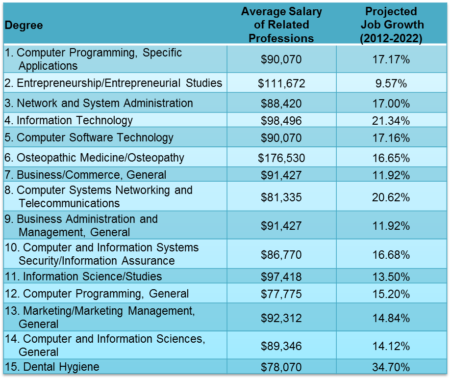 Table 2: Top 15 most employable degrees in 2015 (Source: MSN Money)